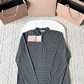 [V공장] 미우미우 로고 스트라이프 그레이 긴팔 폴로티