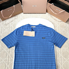 [V공장] 미우미우 로고 스트라이프 블루 티셔츠