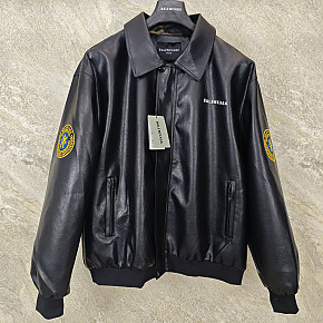 [GTR공장] 발렌시아가 패치 로고 택시 블랙 레더 자켓