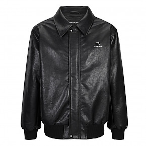 [잔디집] 발렌시아가 블랙 레더 스포티B 택시 블루종 자켓