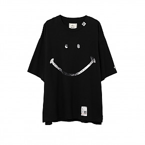 [A캪] 미하라 야스히로 스마일 페이스 프린팅 블랙 티셔츠
