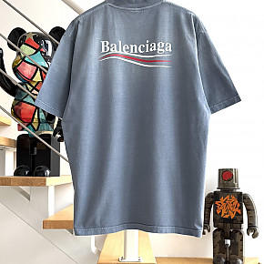 [계단] 발렌시아가 웨이브 로고 워시드 블루 티셔츠