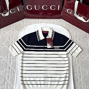[V공장] 구찌 로고 스트라이프 화이트 폴로티