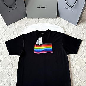 [V공장] 발렌시아가 레인보우 플래그 블랙 티셔츠