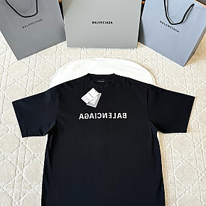 [V공장] 발렌시아가 미러 로고 블랙 티셔츠