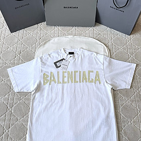 [V공장] 발렌시아가 테이프 타입 로고 화이트 티셔츠
