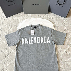 [V공장] 발렌시아가 테이프 타입 로고 그레이 티셔츠