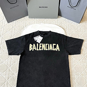 [V공장] 발렌시아가 테이프 타입 로고 블랙 티셔츠