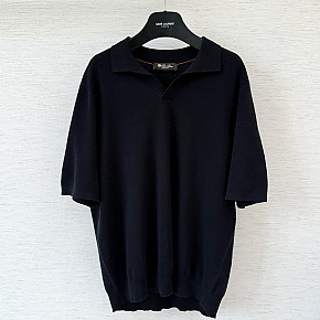[V공장] 로로 피아나 버튼리스 블랙 네이비 울 니트 폴로티