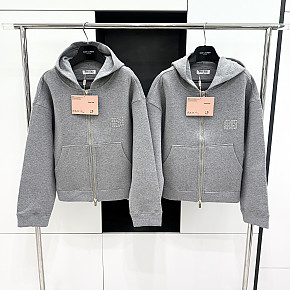 [V공장] 미우미우 로고 패치 그레이 후드집업