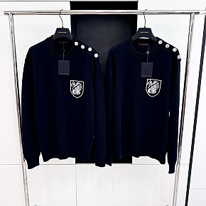 [V공장] 루이비통 시그니처 코튼 블렌드 블랙 네이비 크루넥 니트 스웨터