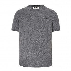 [잔디집] 미우미우 로고 캐시미어 그레이 크루넥 반팔 니트 스웨터