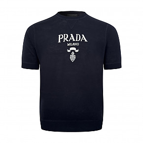 [잔디집] 프라다 로고 울 캐시미어 크루넥 네이비 반팔 니트 스웨터
