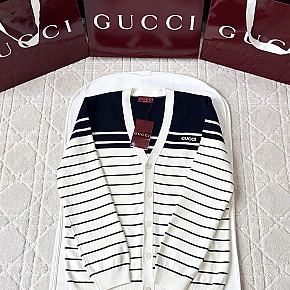 [V공장] 구찌 로고 스트라이프 화이트 가디건