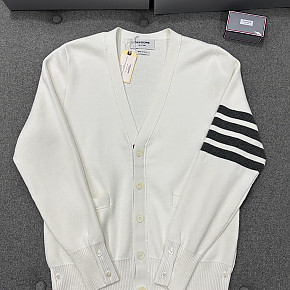 [TJ공장] 톰브라운 밀라노 스티치 코튼 4바 화이트 V넥 가디건