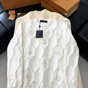 [V공장] 루이비통 모노그램 엠벨리시드 케이블 블렌드 화이트 니트 스웨터