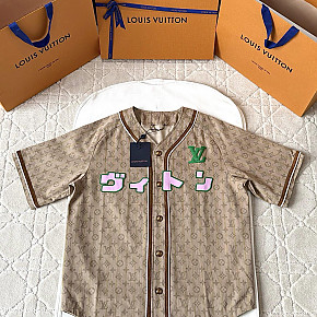 [V공장] 루이비통 X 니고 모노그램 베이스볼 베이지 반팔 셔츠