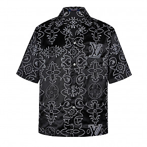 [잔디집] 루이비통 모노그램 프린팅 실크 블랙 반팔 셔츠