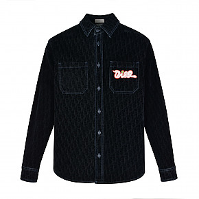[잔디집] 디올 X 카우스 오블리크 패턴 블렌드 코튼 데님 네이비 블루 셔츠