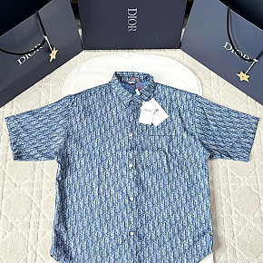 [V공장] 디올 오블리크 패턴 블렌드 트윌 블루 반팔 셔츠