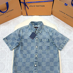 [V공장] 루이비통 다미에 3D 블루 데님 반팔 셔츠