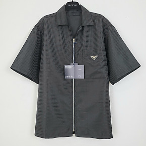 [GTR] 프라다 삼각로고 집업 블랙 반팔 셔츠