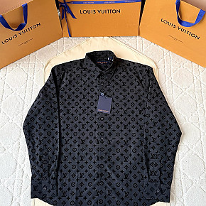 [V공장] 루이비통 LV모노그램 플록 블랙 클래식 셔츠