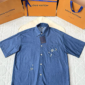 [V공장] 루이비통 LV 시그니처 블루 데님 반팔 셔츠
