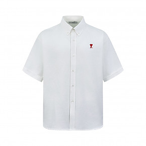 [잔디집] 아미 스몰 하트 로고 옥스포트 화이트 반팔 셔츠