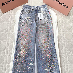 아크네 스튜디오 프린트 블루 브라운 데님 진