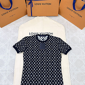 [V공장] 루이비통 모노그램 자카드 네이비 블루 티셔츠 여성복
