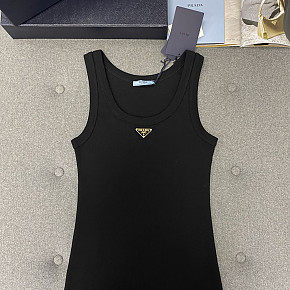 [TJ공장] 프라다 삼각로고 립 니트 블랙 탕크 탑 여성복