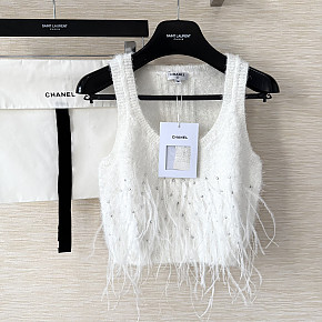 [V공장] 샤넬 실크 퍼 화이트 탱크 탑 여성복
