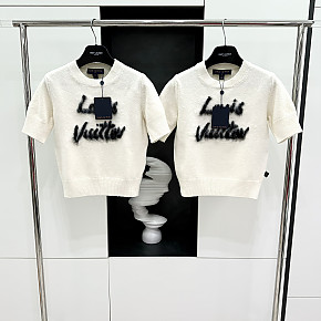 [V공장] 루이비통 LV시그니처 브러시드 화이트 반팔 니트 스웨터 여성복
