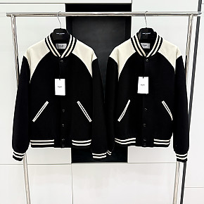 [V공장] 셀린느 테디 스트라이프 레더 블랙 화이트 바시티 자켓