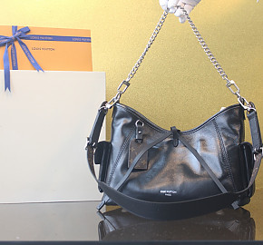 [황벽] 루이비통 캐리올 다크MM 블랙 레더 숄더백 M25143