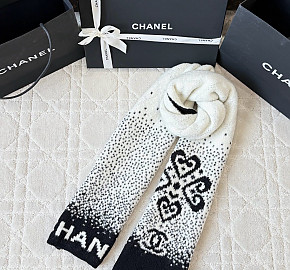 샤넬 화이트 블랙 울 캐시미어 스카프