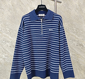 [GTR공장] 미우미우 로고 스트라이프 반집업 블루 긴팔 폴로티