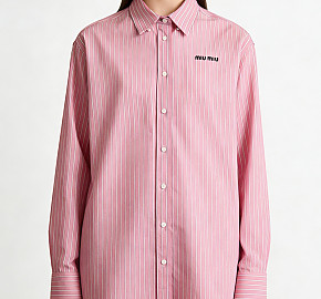 [잔디집] 미우미우 로고 스트라이프 핑크 팝린 셔츠 여성복