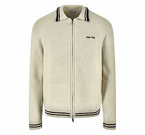 [잔디집] 미우미우 로고 크림 화이트 니트 집업 가디건