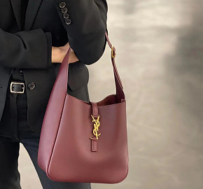 [블랙 프레임] 생로랑 르 5 아 7 라지 카프스킨 레더 버건디 숄더백 753837